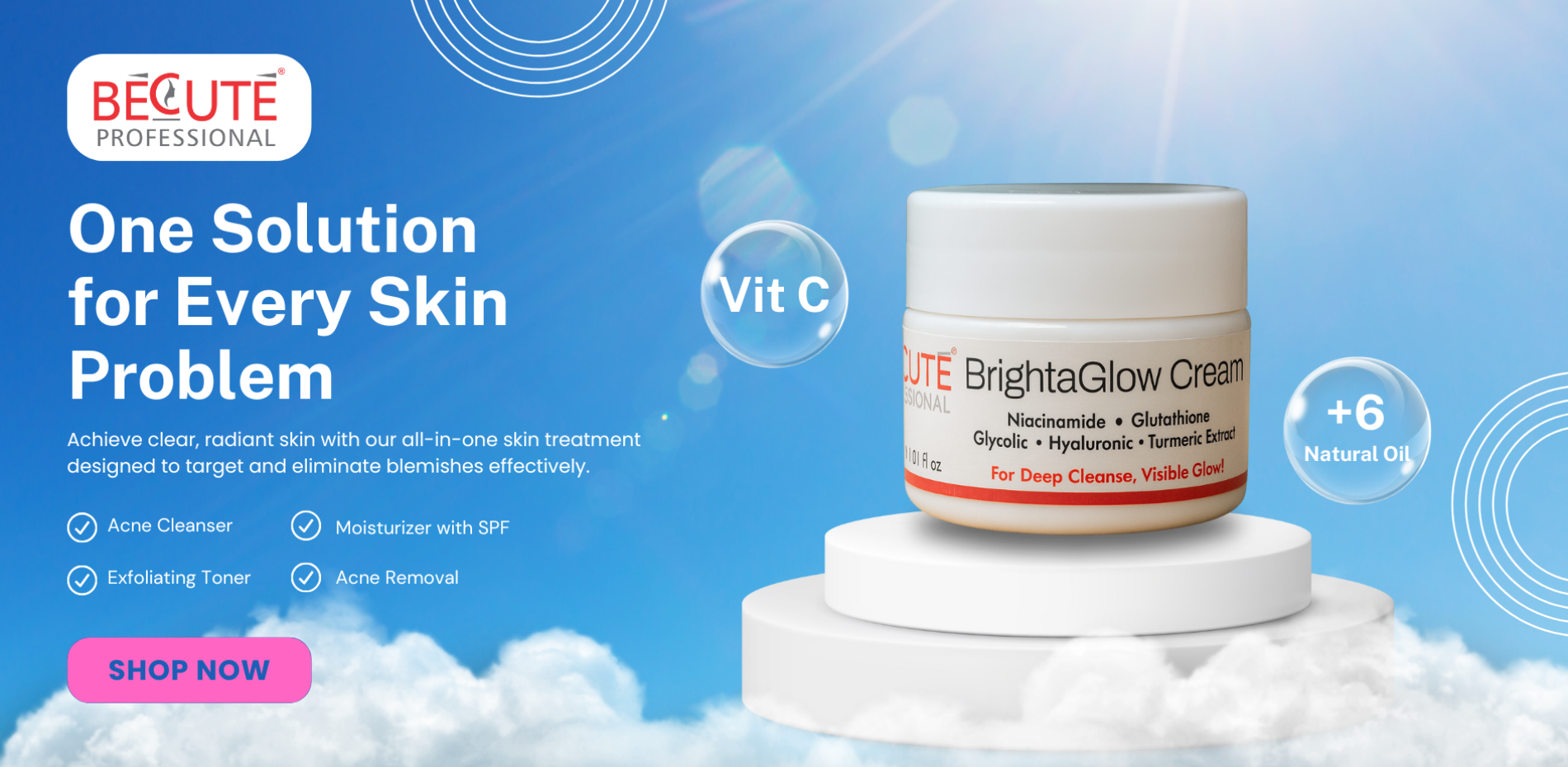 ₹ 899Sale price ₹ 499BrightaGlow by BECUTE is a professional Skin Brightening & Glow Cream formulated with Niacinamide, Glutathione & Turmeric Extract to reduce pigmentation, dark spots, and dullness. Experience visibly glowing, even-toned skin in just days of use. ✨ About BECUTE BrightaGlow Cream BECUTE Professional BrightaGlow Cream is an advanced skin brightening and glowing cream crafted to transform dull, uneven skin into a radiant, luminous complexion. It deeply...Sale -